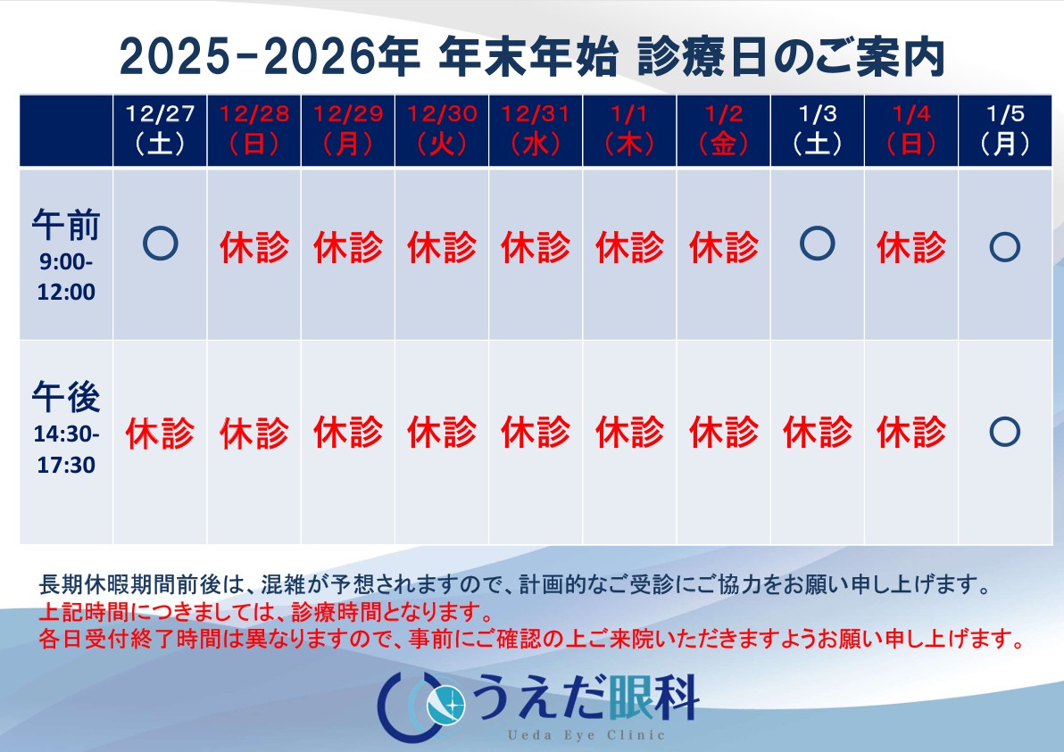 2025年 12月 28日(日)~ 2026年 1月 2日(金)